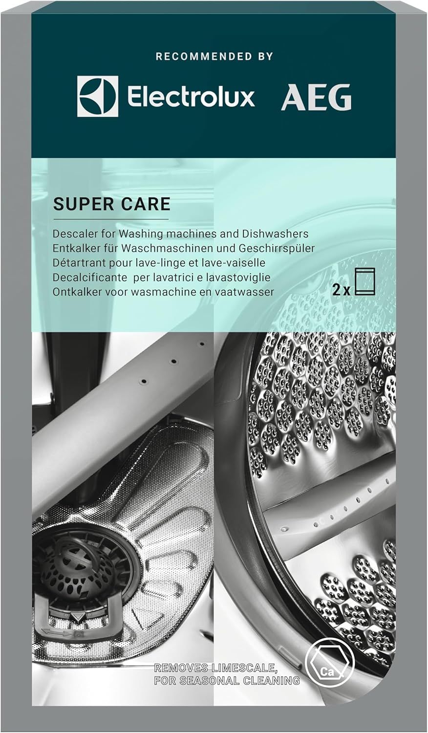 Тривалий та потужний. Засіб для видалення накипу Super Care допомагає підтримувати оптимальну роботу пральних та посудомийних машин, усуваючи та запобігаючи утворенню вапняного нальоту. Він також видаляє запахи та довше зберігає вашу машину новою. Використовуйте засіб для видалення накипу Super Care для очищення труб та барабанів. Використовуйте його кожні 6 місяців у місцях із жорсткою водою, щоб видалити вапняний наліт та запобігти його утворенню.