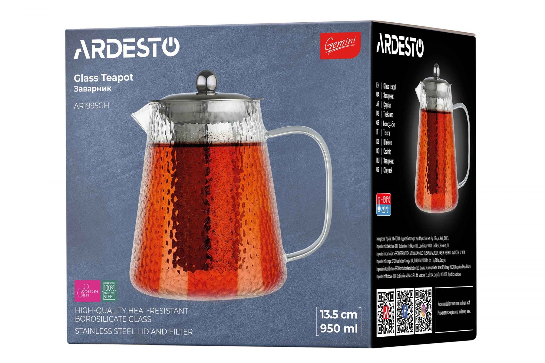 Заварник Ardesto Gemini, 950 мл, боросилікатне скло, нержавіюча сталь