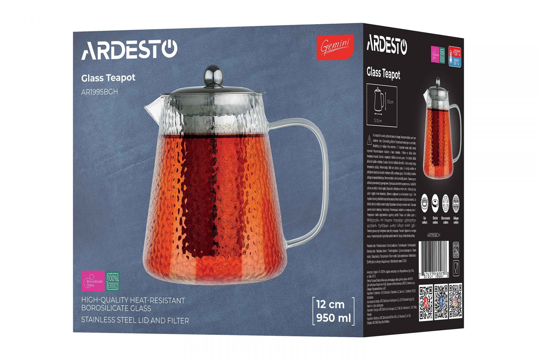 Заварник Ardesto Gemini 950мл, боросилікатне скло, нержавіюча сталь, прозорий