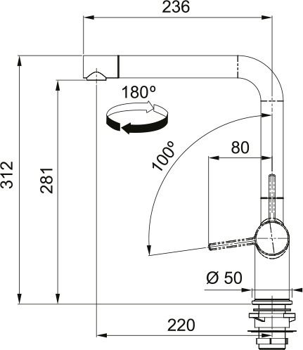 Змішувач для кухні Franke Active L, довж.виливу - 236мм, поворотний, 1важіль, сірий камінь
