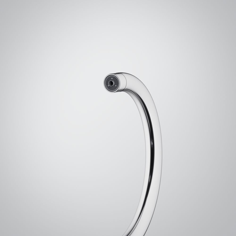 Змішувач Franke Lina J Clear Water 2.0 поєднує класичний J-подібний вилив і можливість подачі фільтрованої води. Поворотний вилив на 360° забезпечує зручну роботу з мийкою будь-якого формату, включно з острівними кухнями. Окремий канал для очищеної води дозволяє використовувати фільтраційні системи, зокрема зворотний осмос. Бічний важіль керування відкривається вперед, що спрощує монтаж біля стіни. Хромоване покриття надає змішувачу стриманого сучасного вигляду.