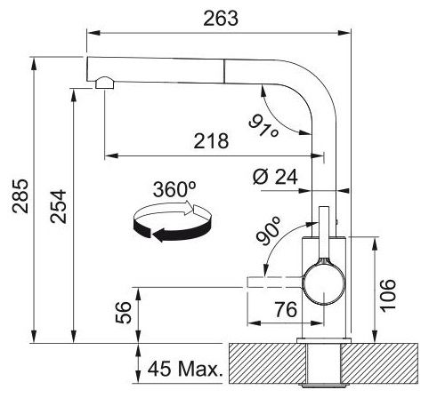 Змішувач для кухні Franke Lina L Pull Out, довж.виливу - 218мм, поворотний, 1важіль, витяжний, бежевий