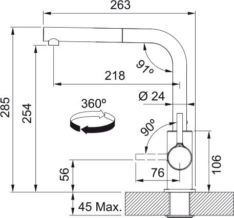 Змішувач для кухні Franke Lina L Pull Out, довж.виливу - 254 мм, поворотний, 1 важіль , хром-чорний