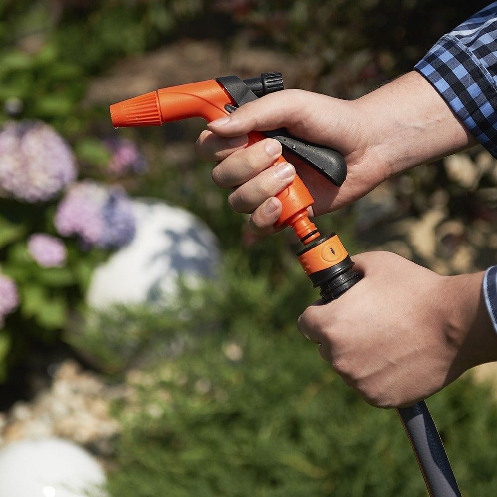 Особливості:Ергономічна ручка, можливість вибору напору струменя, швидкодіючий роз'єм для приєднання, регулювання напору струменя, 2 режими розпилення, система швидкого з'єднання