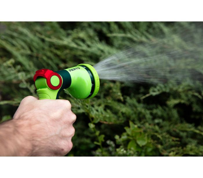 Зрошувач ручний Verto, пістолетний, 1/2"-3/4", 10 функцій, регулювання напорурегулювання напору / розпилу води, тримач двокомпонентний
