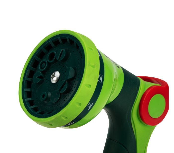 Пістолетний дощувач з регульованим розпиленням 15G7017 від VERTO з плавним регулюванням розпилення за допомогою великого пальця. Пістолет оснащений функцією вибору типу розпилення, що дозволяє підібрати його потужність відповідно до виконуваної роботи. Чітке маркування полегшує вибір відповідного типу розпилення. Рукоятка ергономічної форми добре лежить у руці і не вислизає, що робить роботу більш комфортною. Дощувач виготовлений із ABS-пластику, частково покритого TPR-гумою.